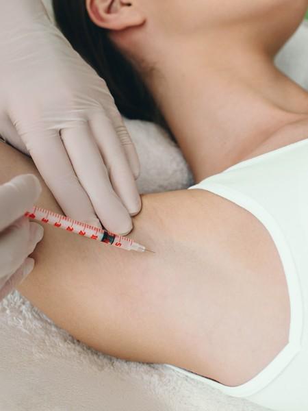 Le Botox est injecté en superficie à l’aide de fines aiguilles sur toute la surface de la zone sécrétrice de l’aisselle.